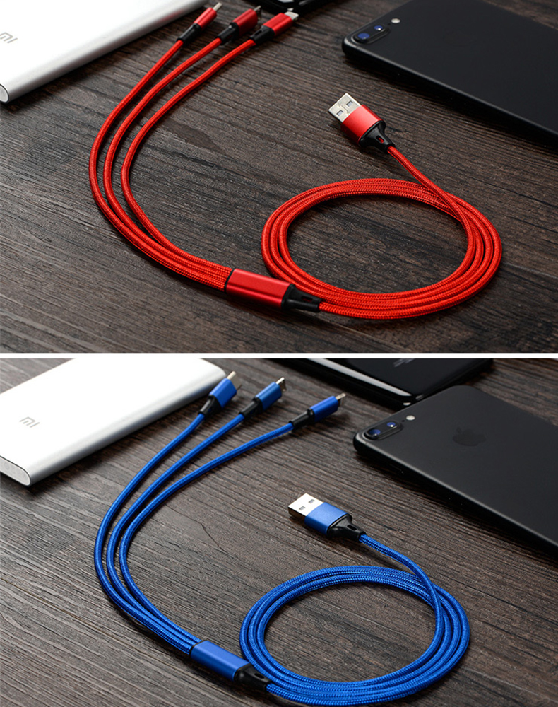 京东自营卫甲 苹果数据线安卓type-c三合一快充数据线iPhonexs一拖三多功能车载手机充电线 神秘黑