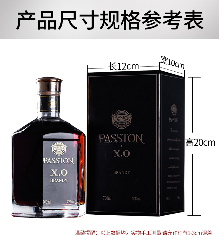京东自营法国原酒洋酒 派斯顿xo白兰地 方樽40度烈酒单支装700ml