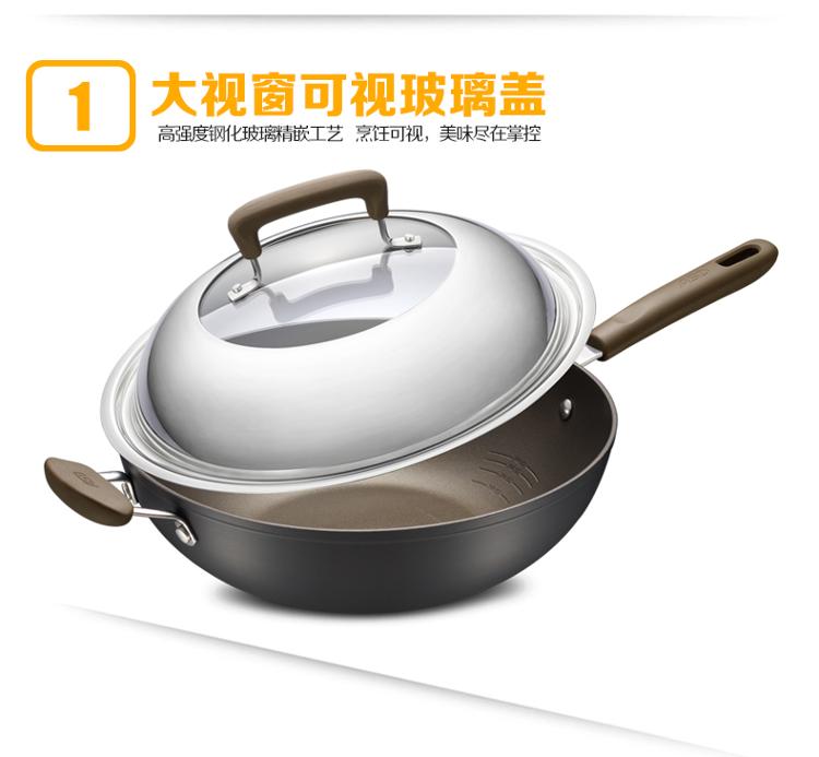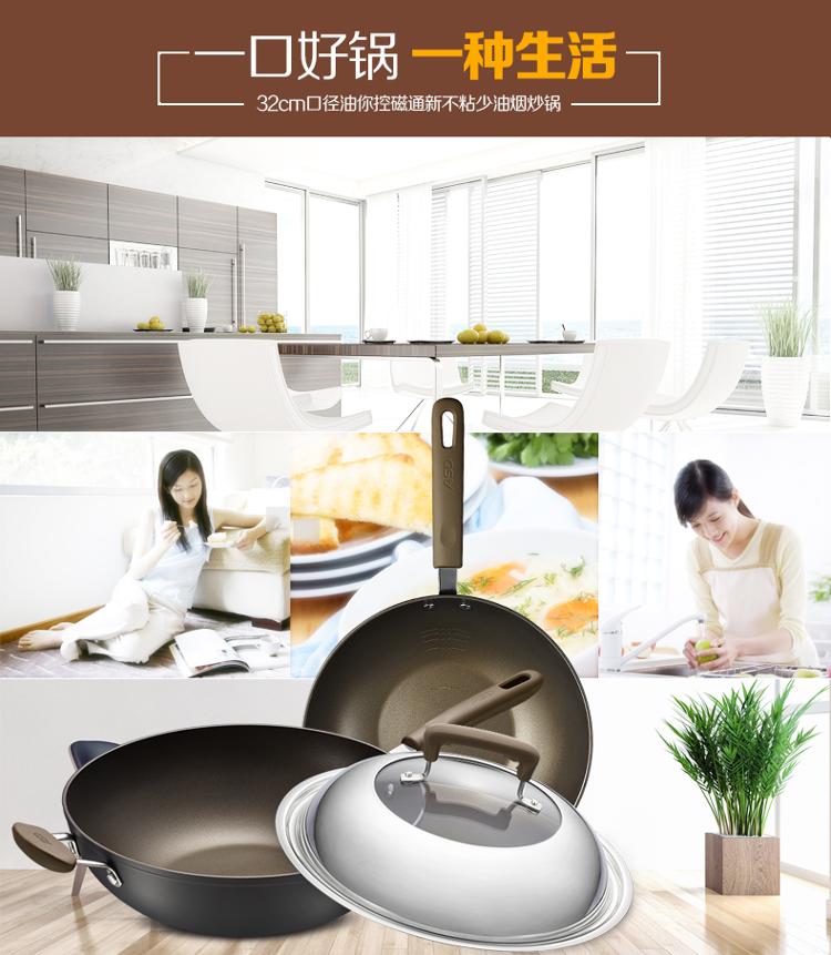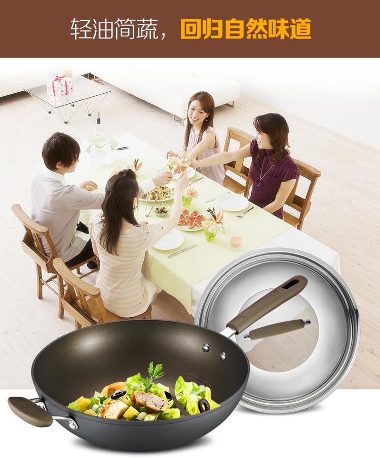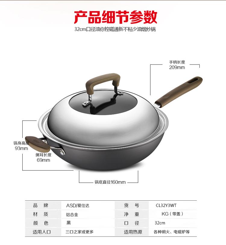 京东自营爱仕达 32CM油你控新不粘炒锅CL32Y3WT 不沾无油烟炒锅 电磁炉明火通用