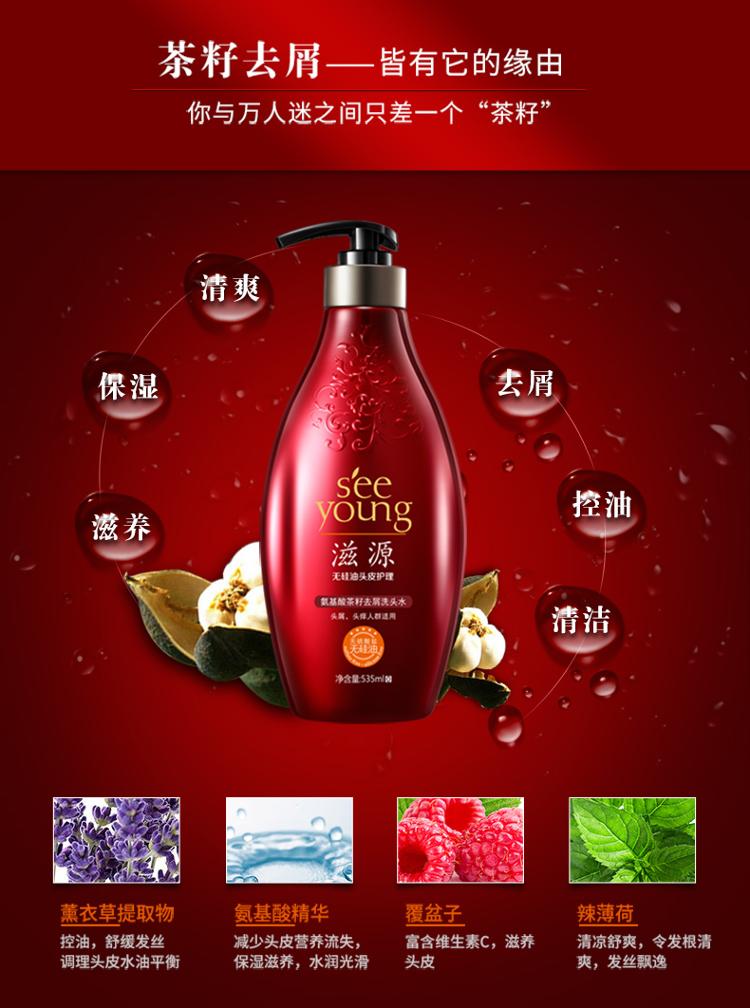 京东自营滋源洗发水套装 氨基酸茶籽去屑洗发3件套 洗535ml+旅行装60ml*2 (无硅油 调养头皮 温和去屑 男女士)