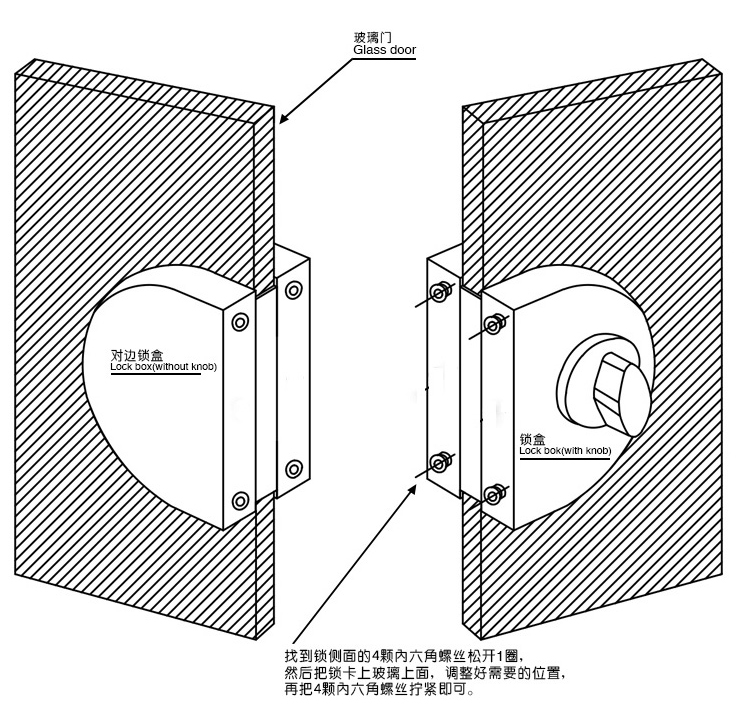 京东自营雨花泽(Yuhuaze)玻璃门锁 双门双开移门锁 防盗大门锁具 免开孔安装不锈钢门锁