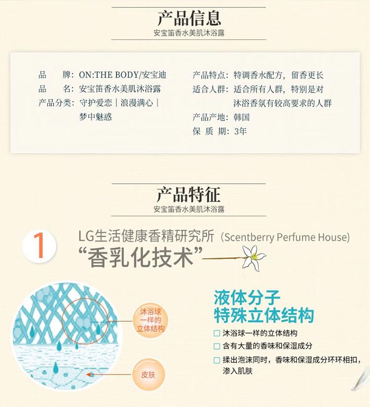京东自营安宝笛 韩国进口 香水美肌沐浴露 400g*3支 香水配方 持久留香 细致渗透力
