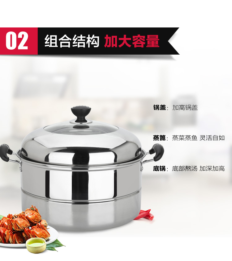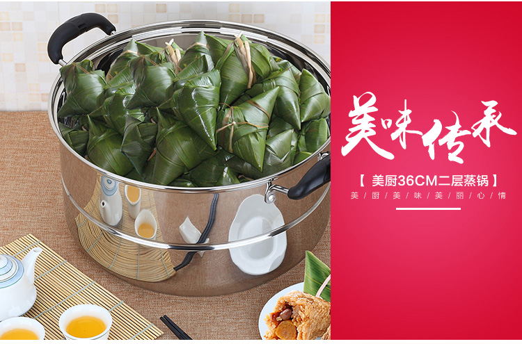 京东自营美厨(maxcook)二层蒸锅加厚不锈钢 36CM 雅厨系列 MCZ203 蒸煮两用 可用电磁炉