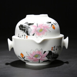 京东自营尚帝(shangdi)旅行茶具一壶一杯茶壶陶瓷茶具小号冲茶壶茶杯功夫简易泡茶壶冲茶普洱个人白瓷 荷趣快客杯