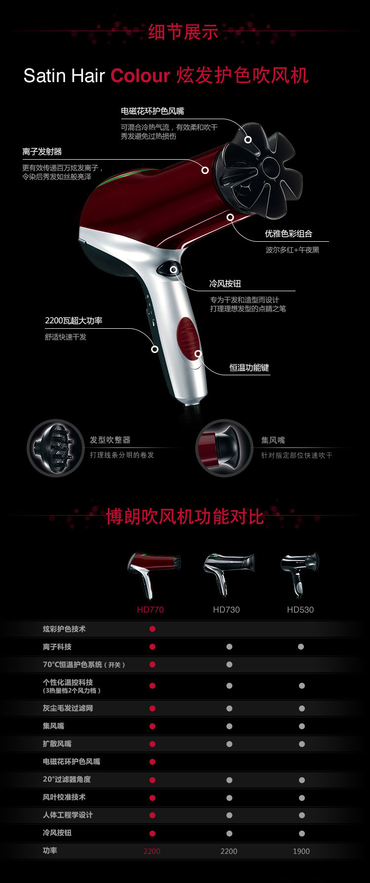 京东自营博朗(BRAUN)电吹风机家用大功率炫发护色负离子HD770