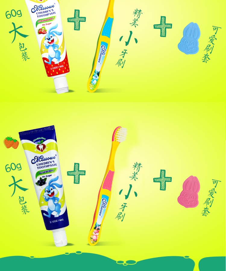 京东自营蜜语Missoue儿童牙刷牙膏套装(60g*2+软毛牙刷*2)无氟婴幼儿宝宝无氟牙膏 进口