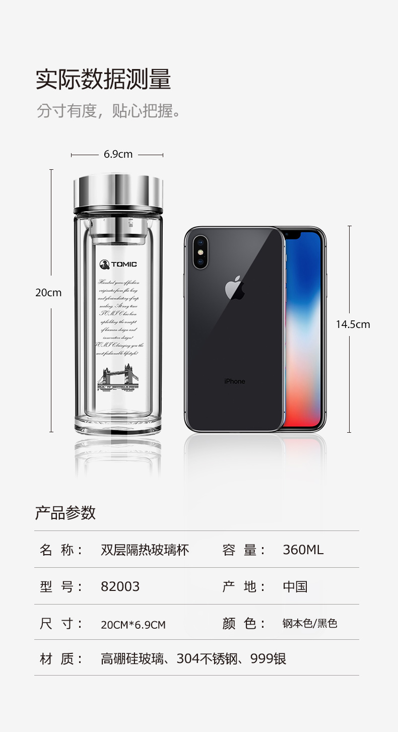 京东自营TOMIC特美刻乐茶杯双层玻璃杯男创意999银茶隔便携商务水杯带盖办公泡茶杯子 黑色(银茶隔)