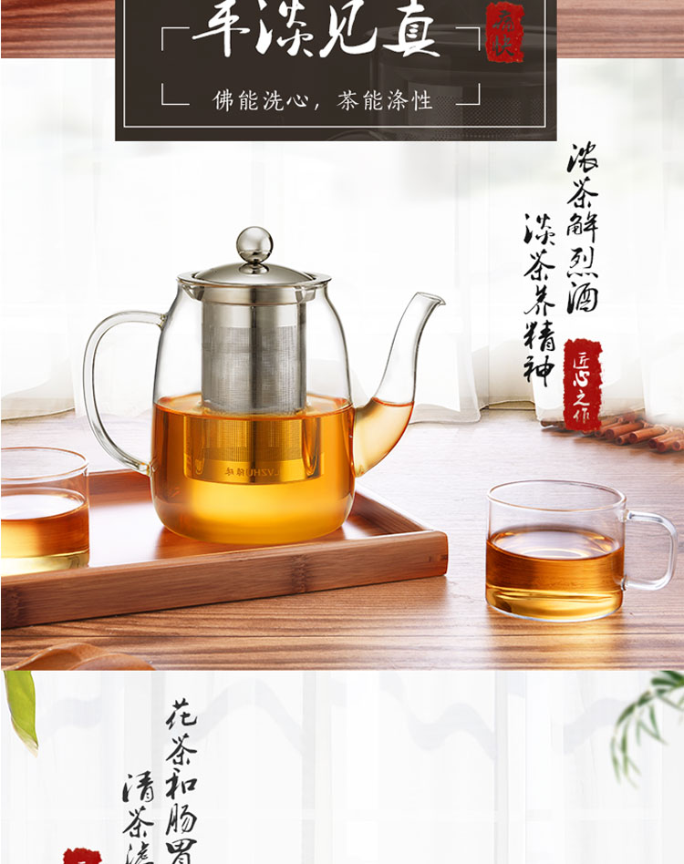 京东自营绿珠lvzhu 850ml玻璃茶具整套一壶四杯一茶盘 泡茶壶煮茶器加厚耐热耐高温烧水过滤茶壶办公功夫茶杯Q725