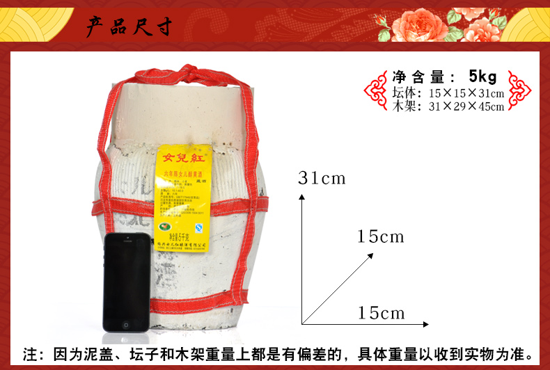 京东自营女儿红六年陈花雕酒国标藏酒级黄酒正宗绍兴黄酒坛装手工糯米陈年老酒5kg 京东仓发货送货上楼
