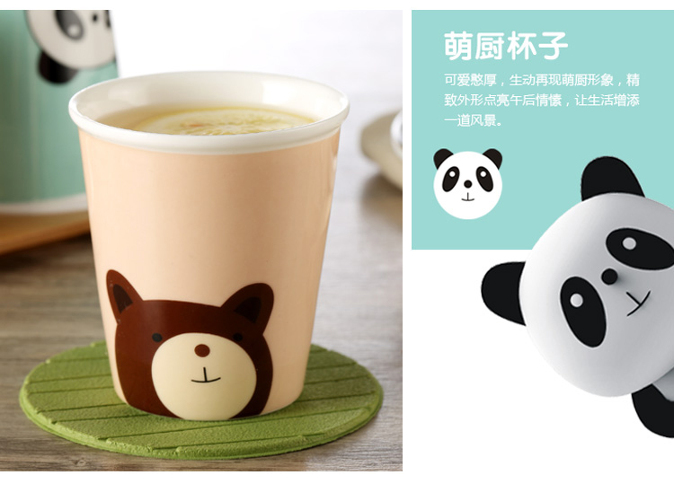 京东自营贝瑟斯 水杯套装陶瓷杯4个装送托盘 创意水杯家庭套装家用喝水杯子茶杯可爱咖啡杯儿童牛奶杯北欧客厅水具