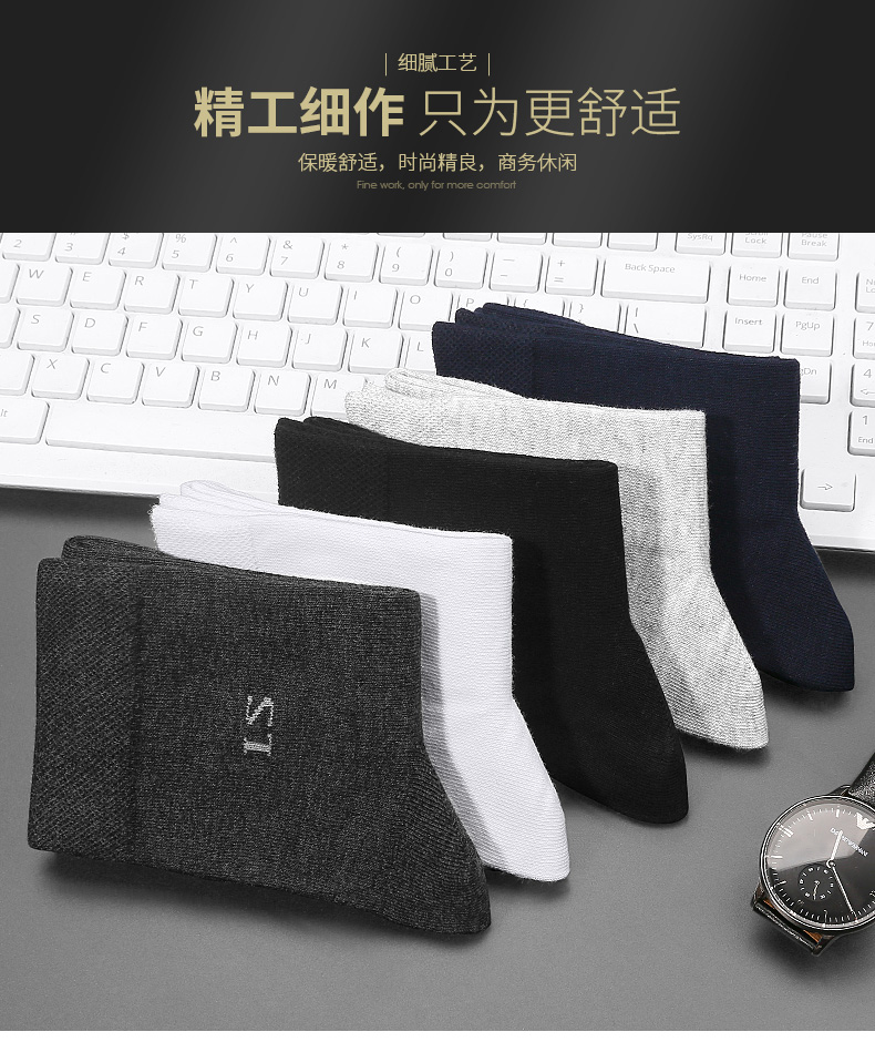 京东自营浪莎袜子男 纯棉男袜秋冬保暖舒适全棉吸汗冬天长袜男士中筒商务休闲棉袜6双装 黑2深灰2浅灰2 均码