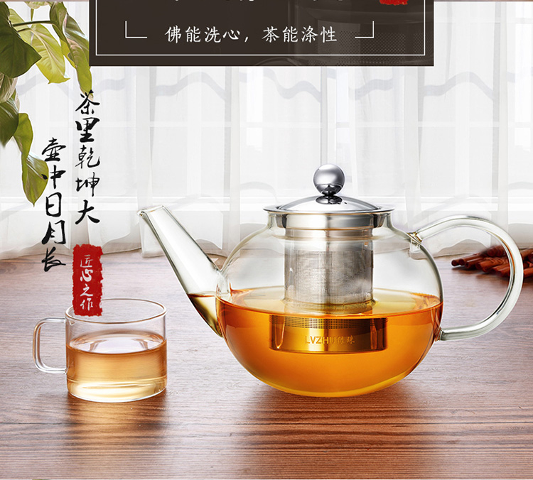 京东自营绿珠lvzhu 1200ml玻璃茶具整套一壶四杯一茶盘 泡茶壶煮茶器加厚耐热耐高温烧水过滤茶壶办公功夫茶杯Q722