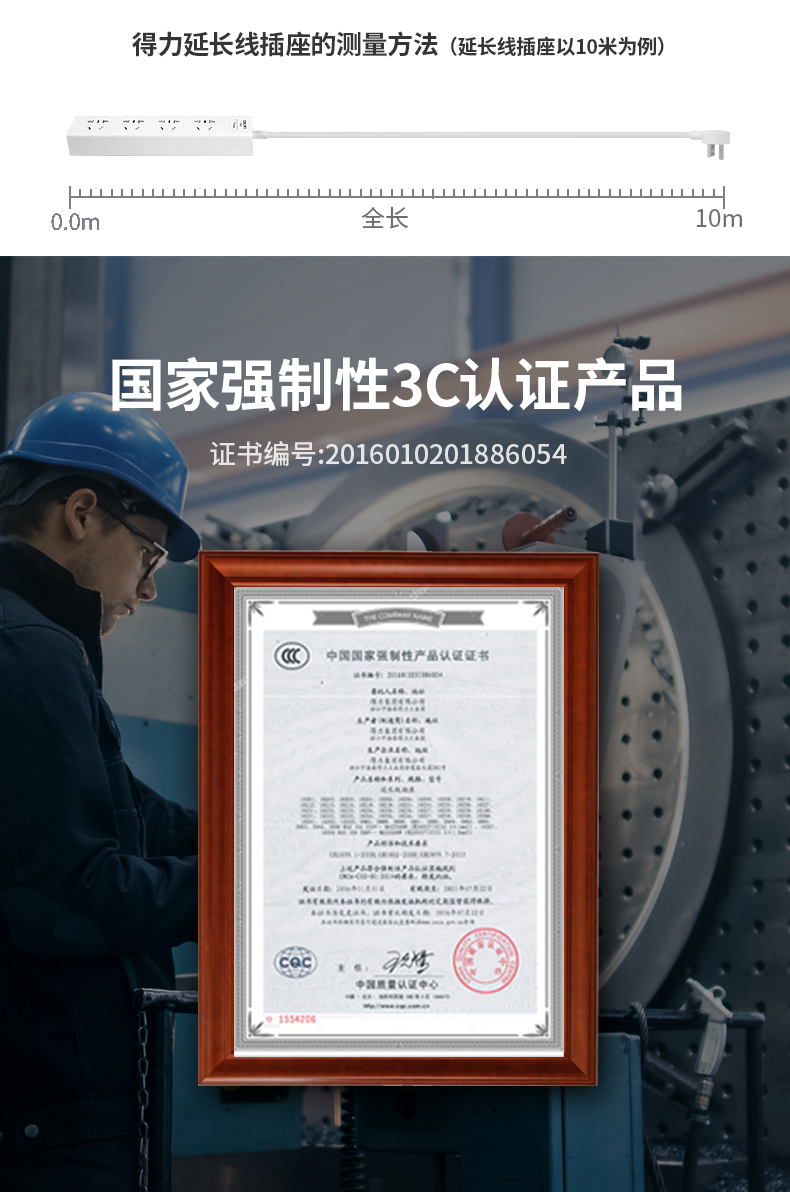 京东自营得力(deli)插座 插排/插线板/接线板/排插/拖线板 新国标 6位组合孔10米 总控开关 18264
