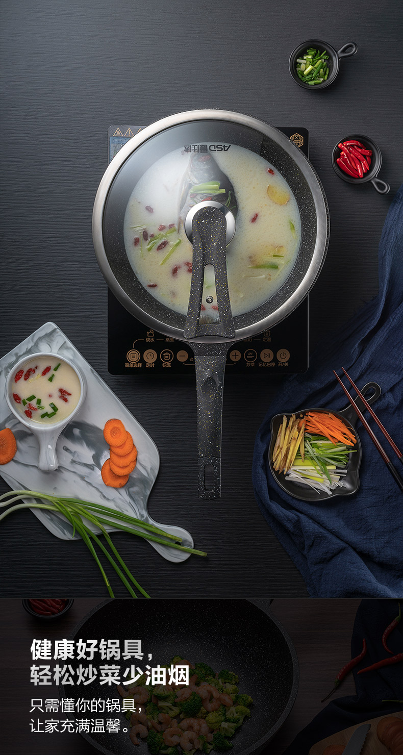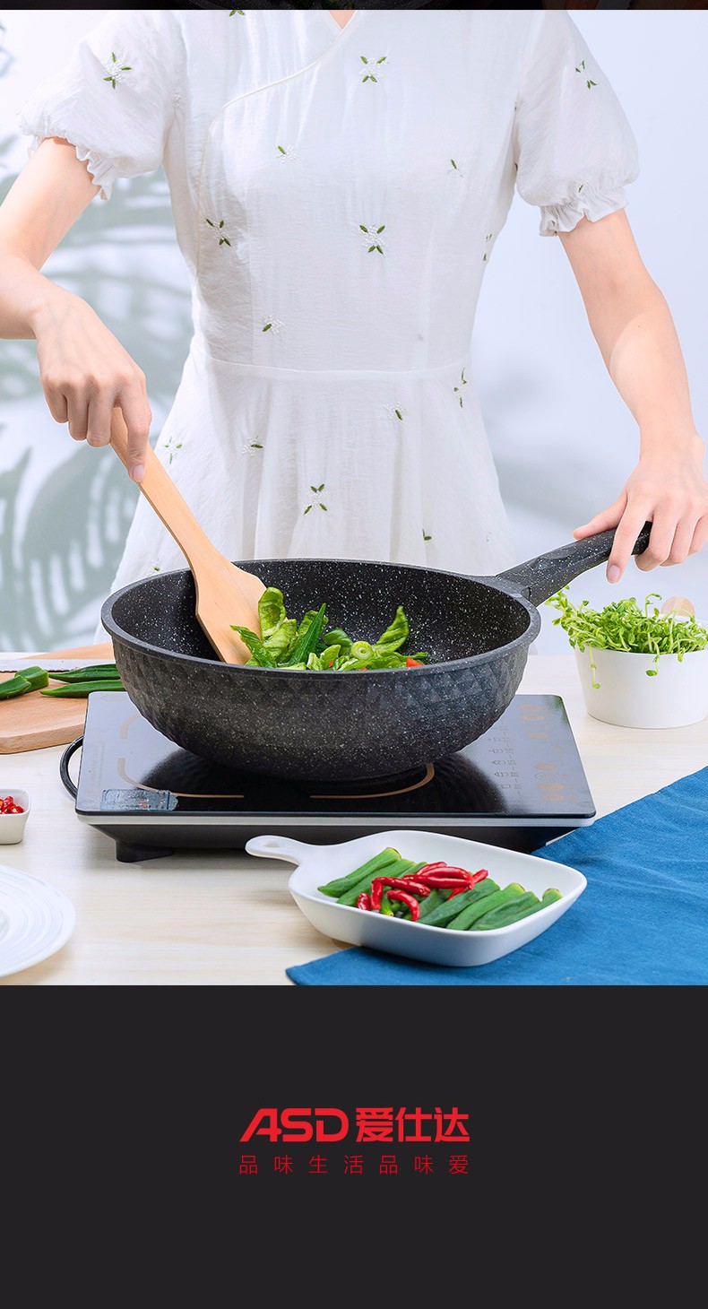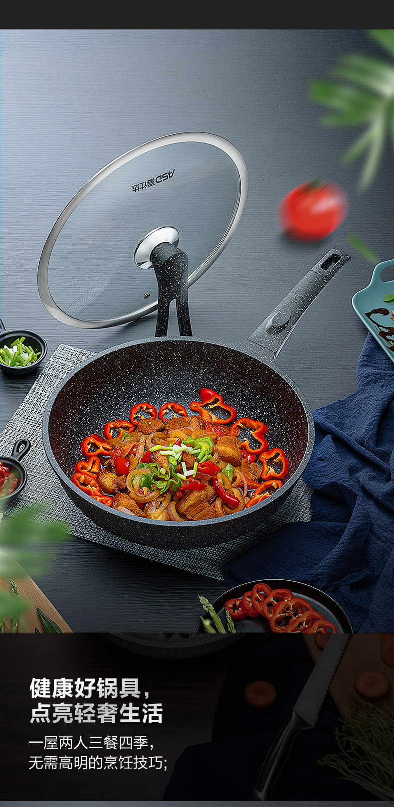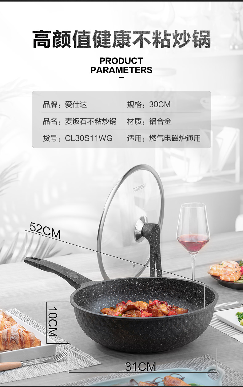 京东自营爱仕达(ASD)麦饭石复底带锅盖不粘锅炒锅少油烟煎锅送木铲 电磁炉明火通用 CL30S11WG 30cm