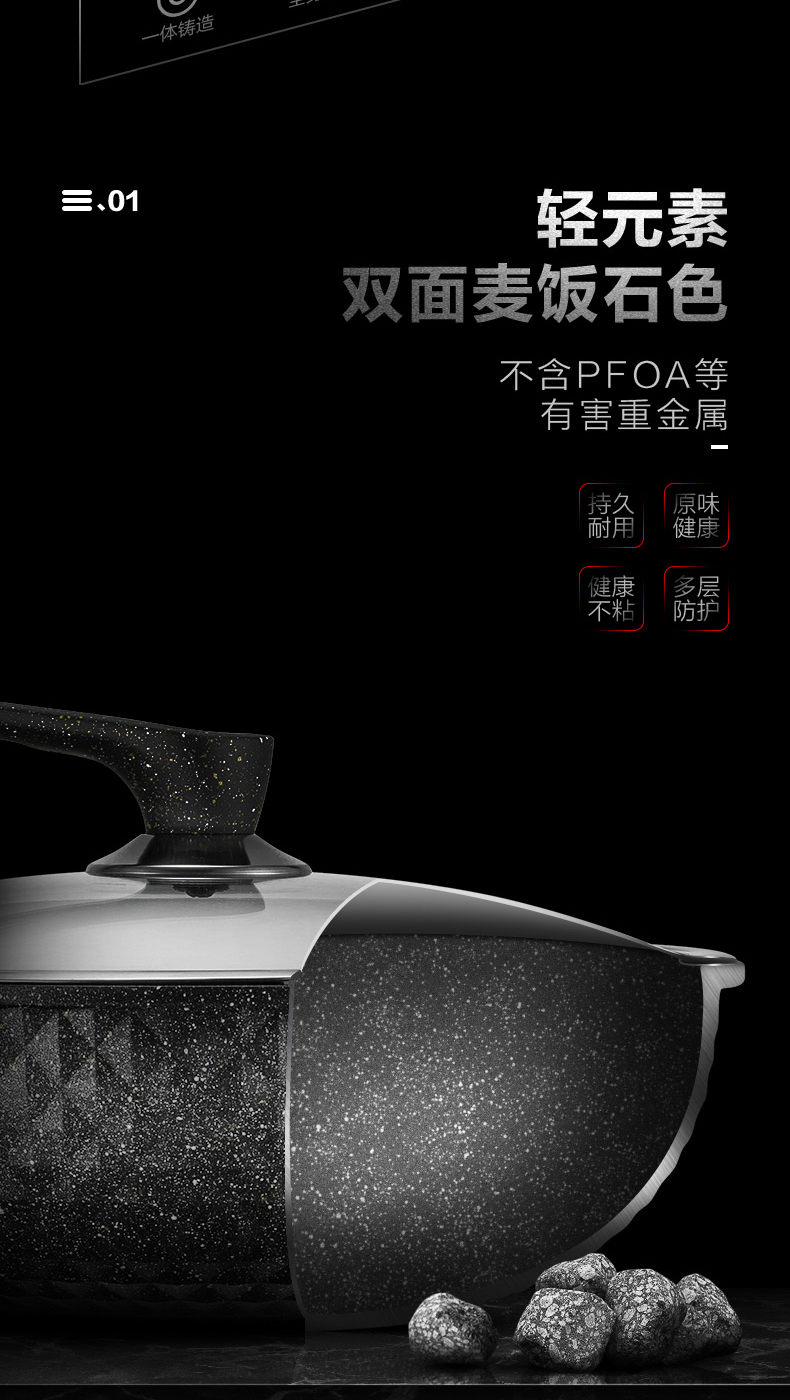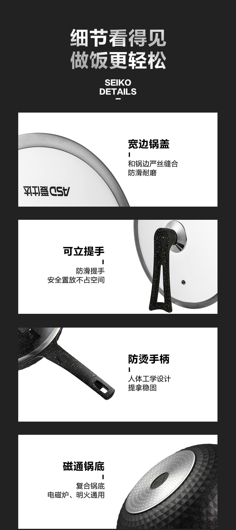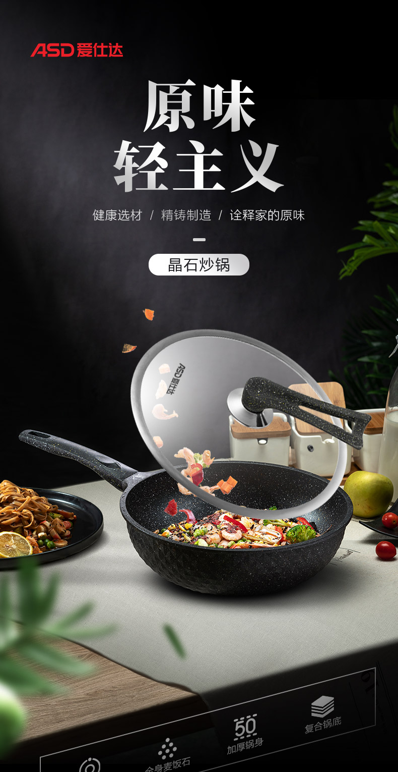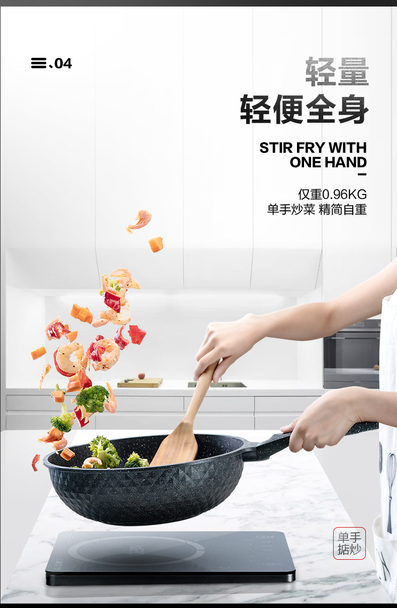 京东自营爱仕达(ASD)麦饭石复底带锅盖不粘锅炒锅少油烟煎锅送木铲 电磁炉明火通用 CL30S11WG 30cm