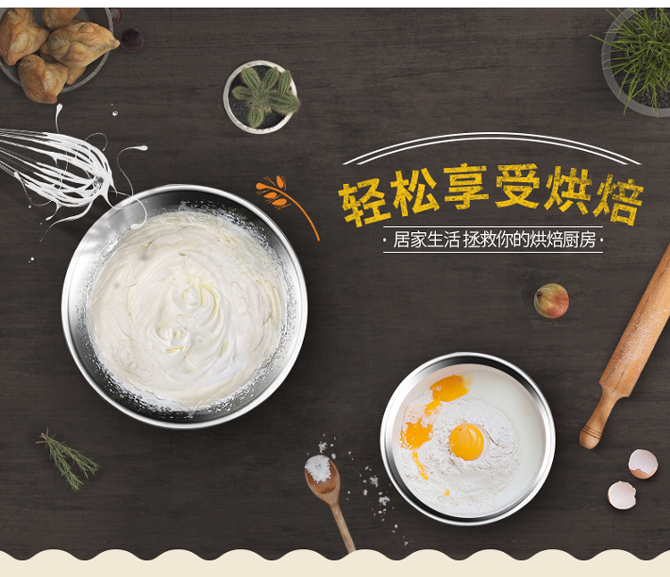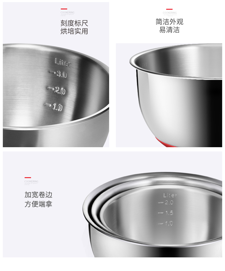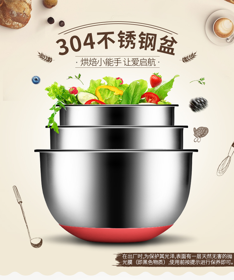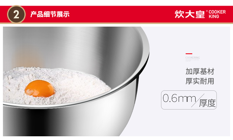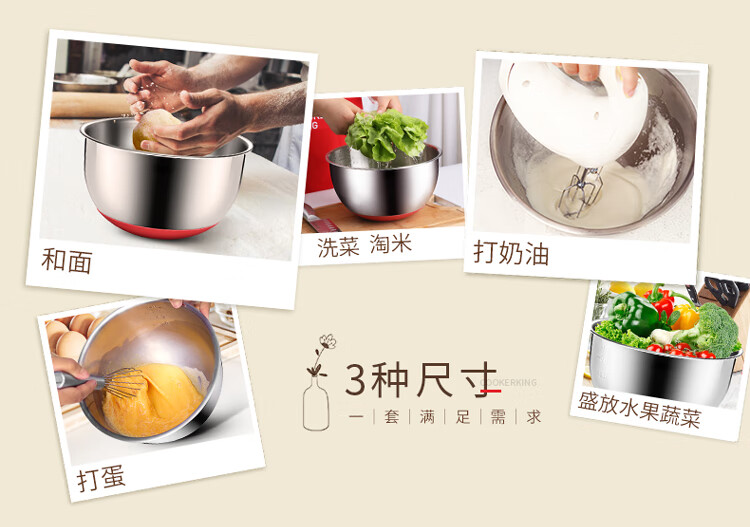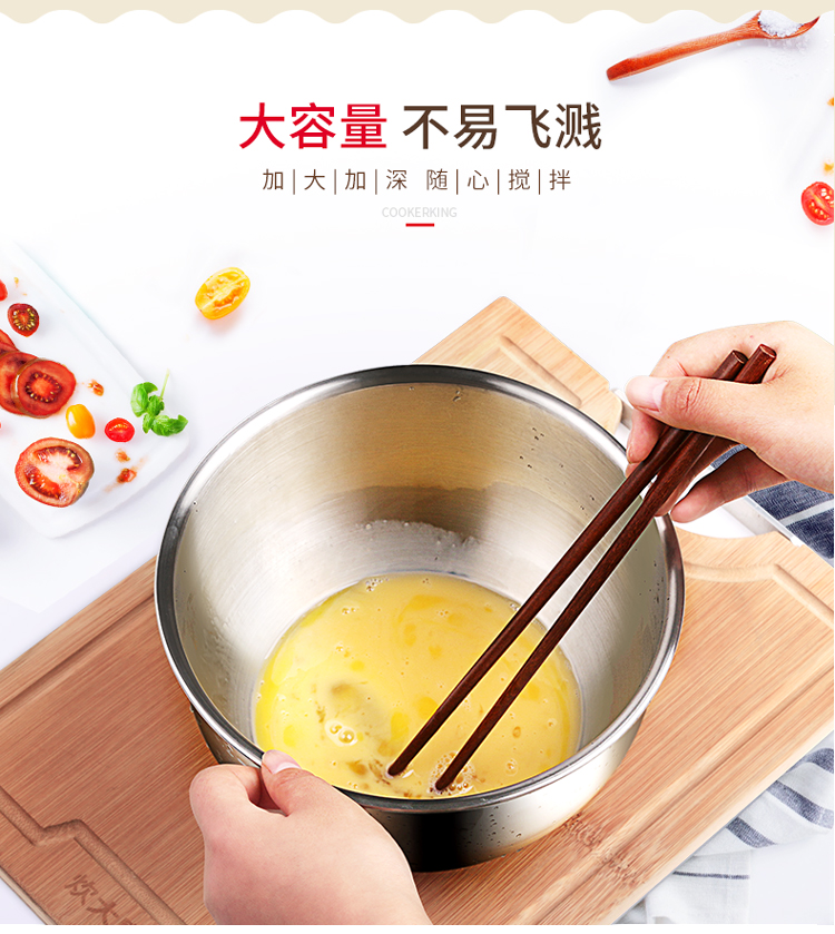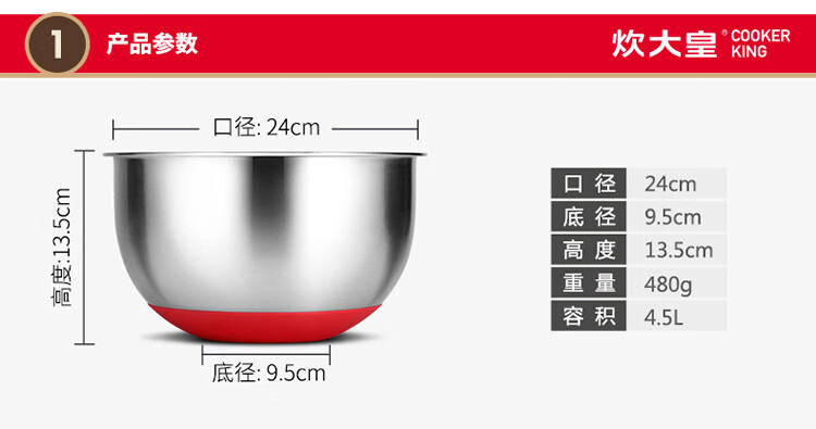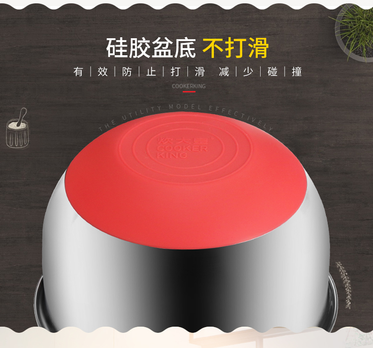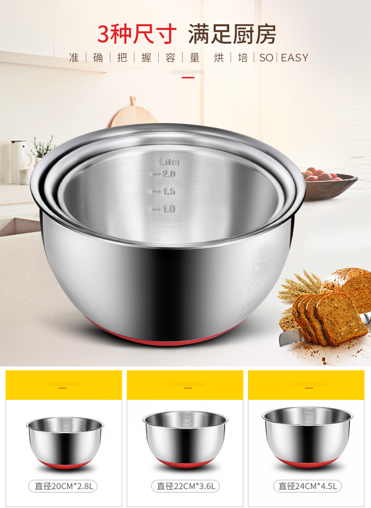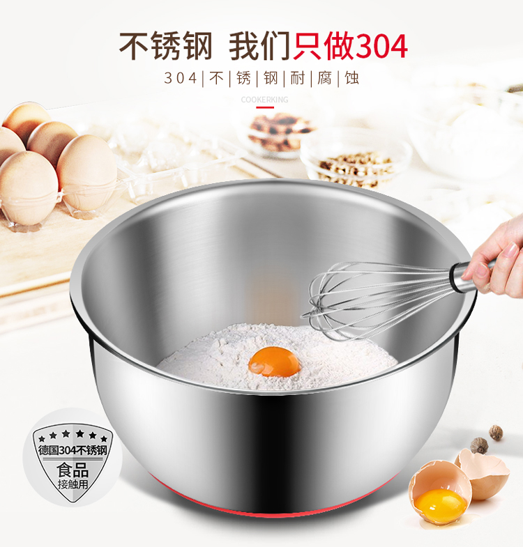 京东自营炊大皇304不锈钢沙拉盆加厚味斗24cm硅胶垫防滑洗菜和面调料腌肉SLP24A
