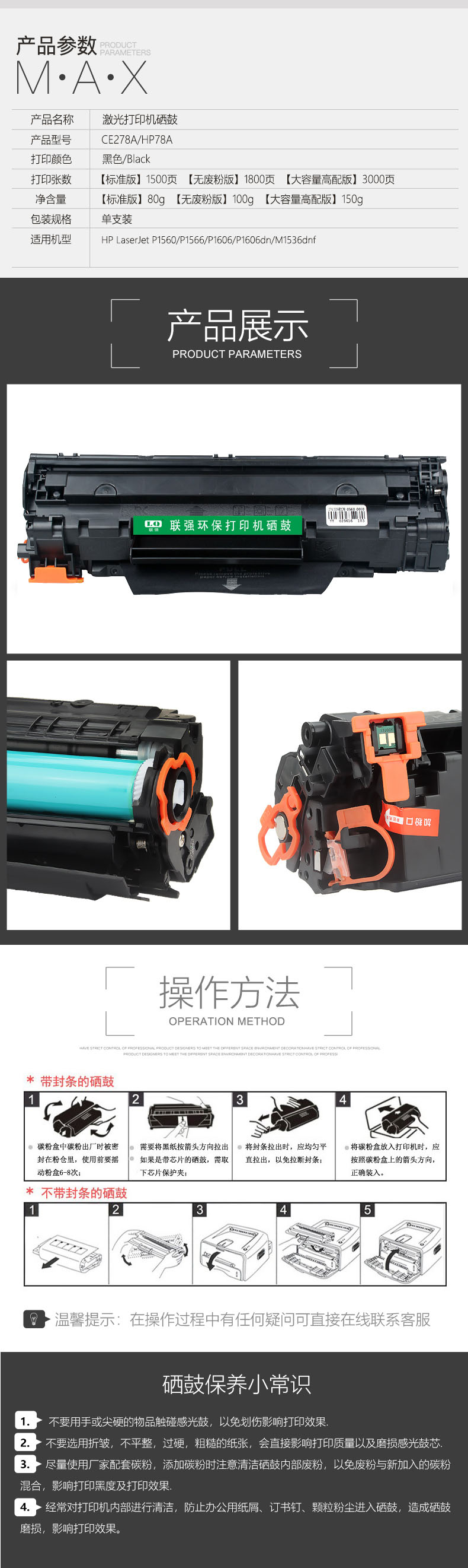 京东自营联强CE278硒鼓 适用惠普HPM1536MF/ P1560/P1566/P1606DN系列打印机 黑色
