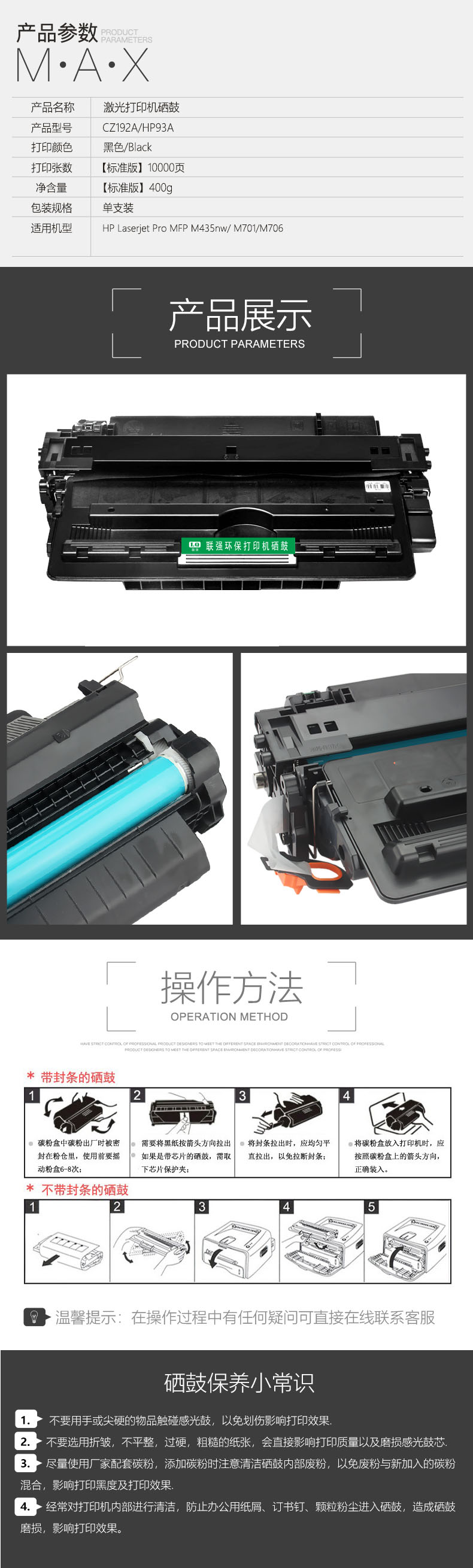 京东自营联强CZ192A适用惠普 HP M435nw M701 M706打印机墨粉盒 黑色