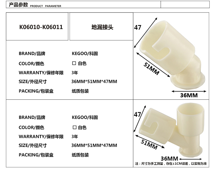 京东自营科固(KEGOO)K06010 洗衣机地漏接头 卫生间下水道排水管接口 浴室淋浴三通弯头