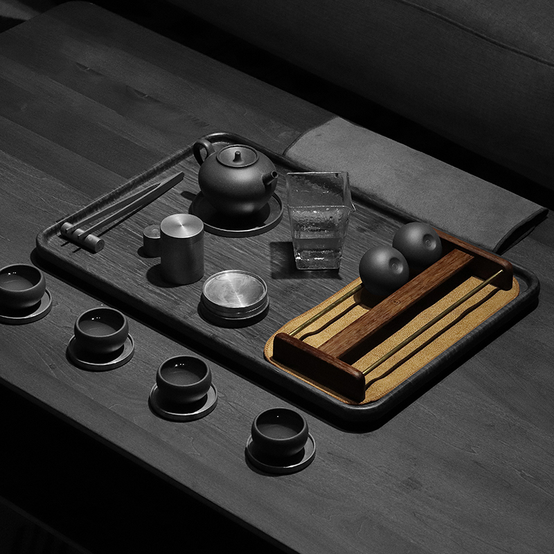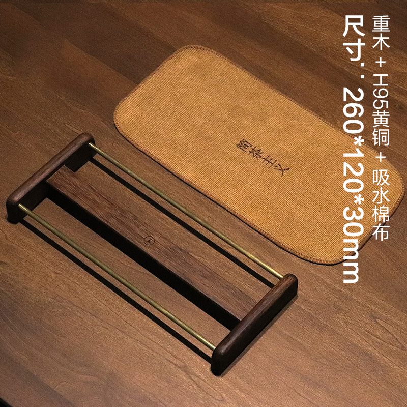 京东自营悟土 《一条-木心杯架》重竹加黄铜杯架功夫茶具茶杯托放茶杯架(不含杯子) 含吸水棉布 木心杯架