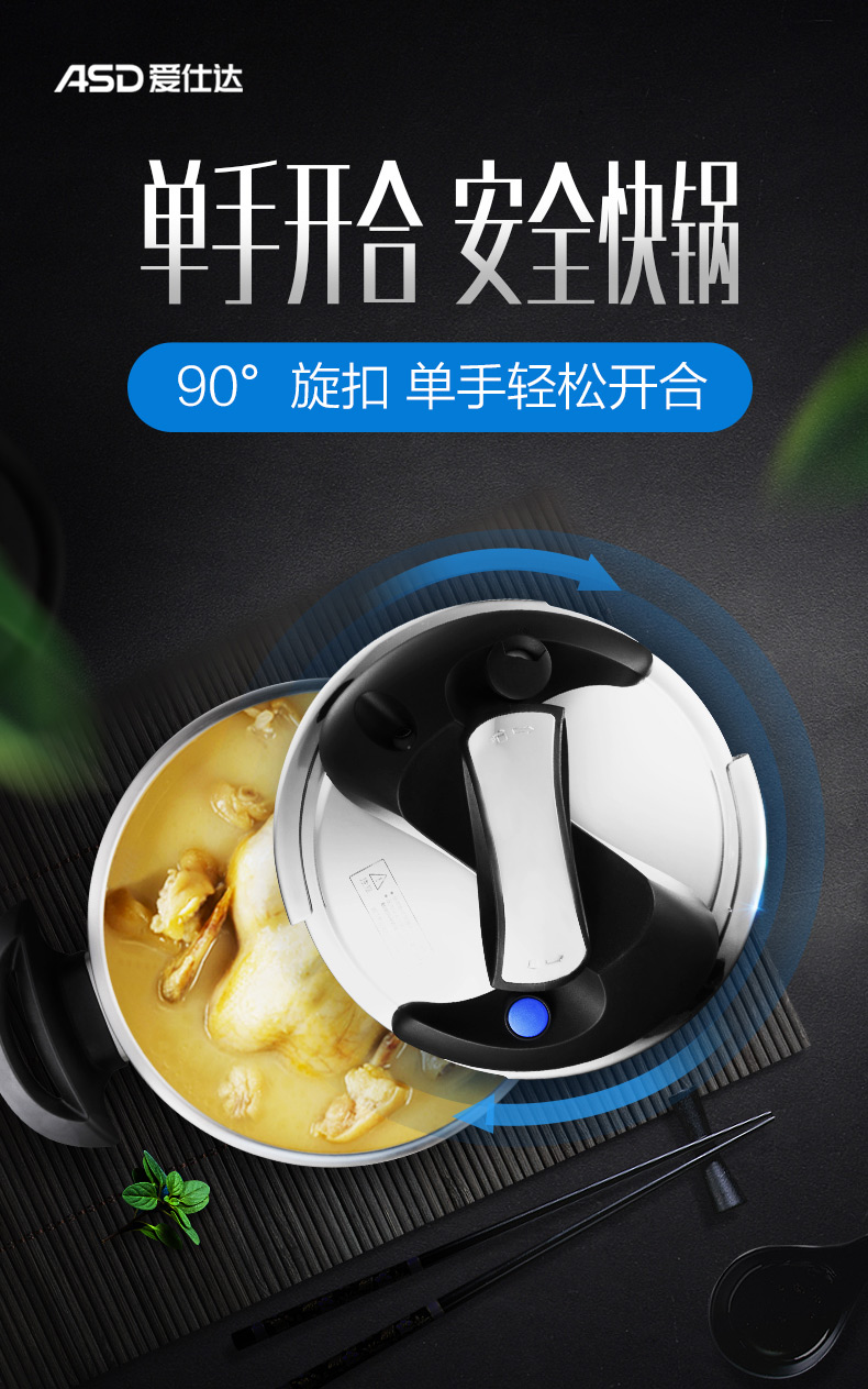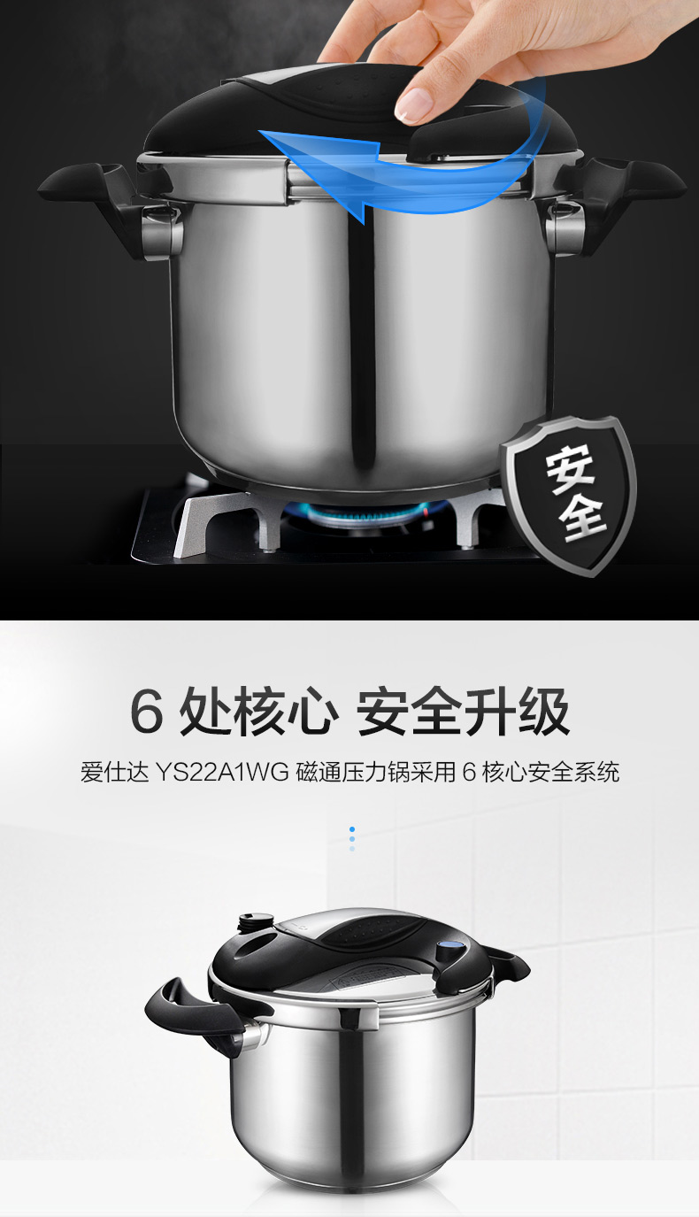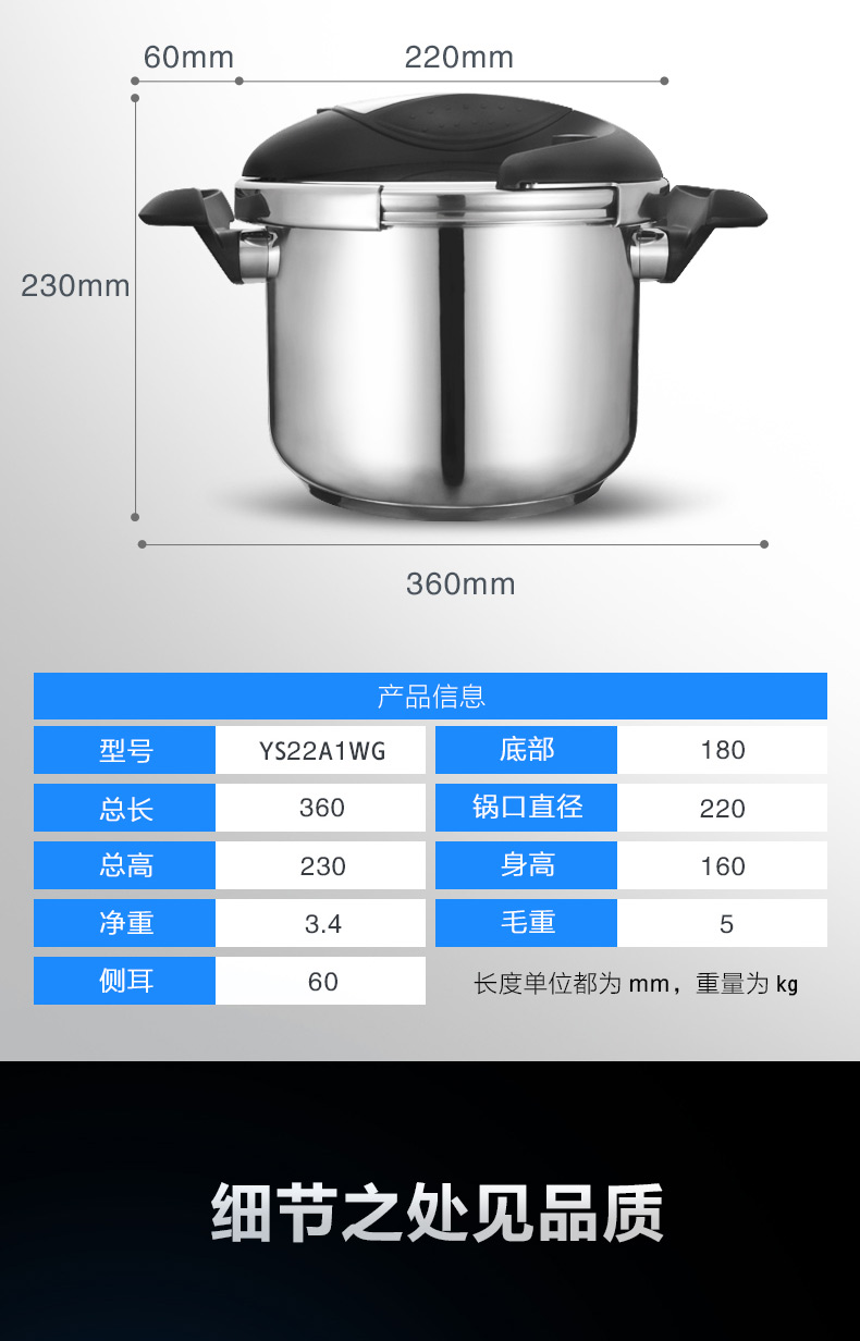 京东自营爱仕达(ASD)高压锅 304不锈钢复底加厚压力锅炖锅焖锅 单手开合耐高温耐腐蚀 YS22A1WG 电磁炉明火通用 22cm