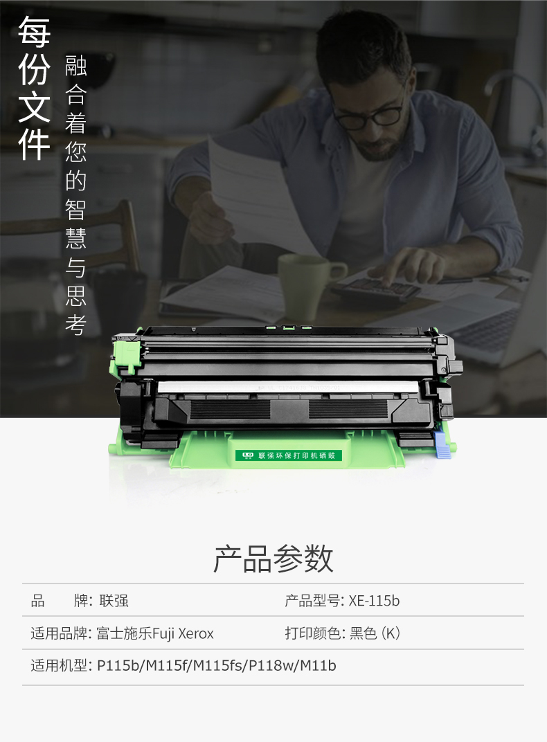 京东自营联强XE118/115粉盒 适用Xerox M115FS P118 系列 打印机 黑色