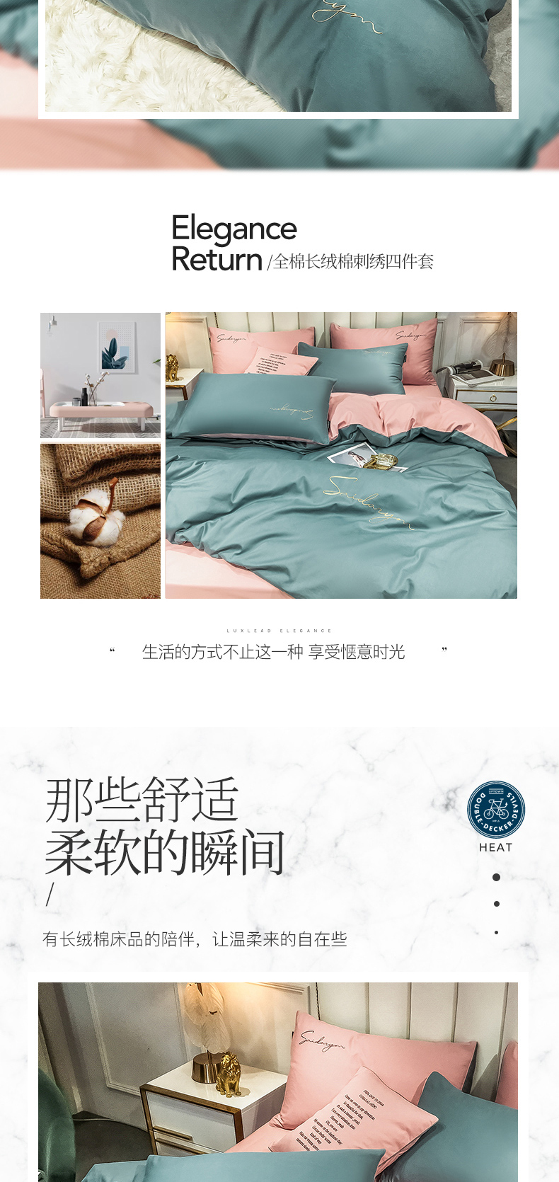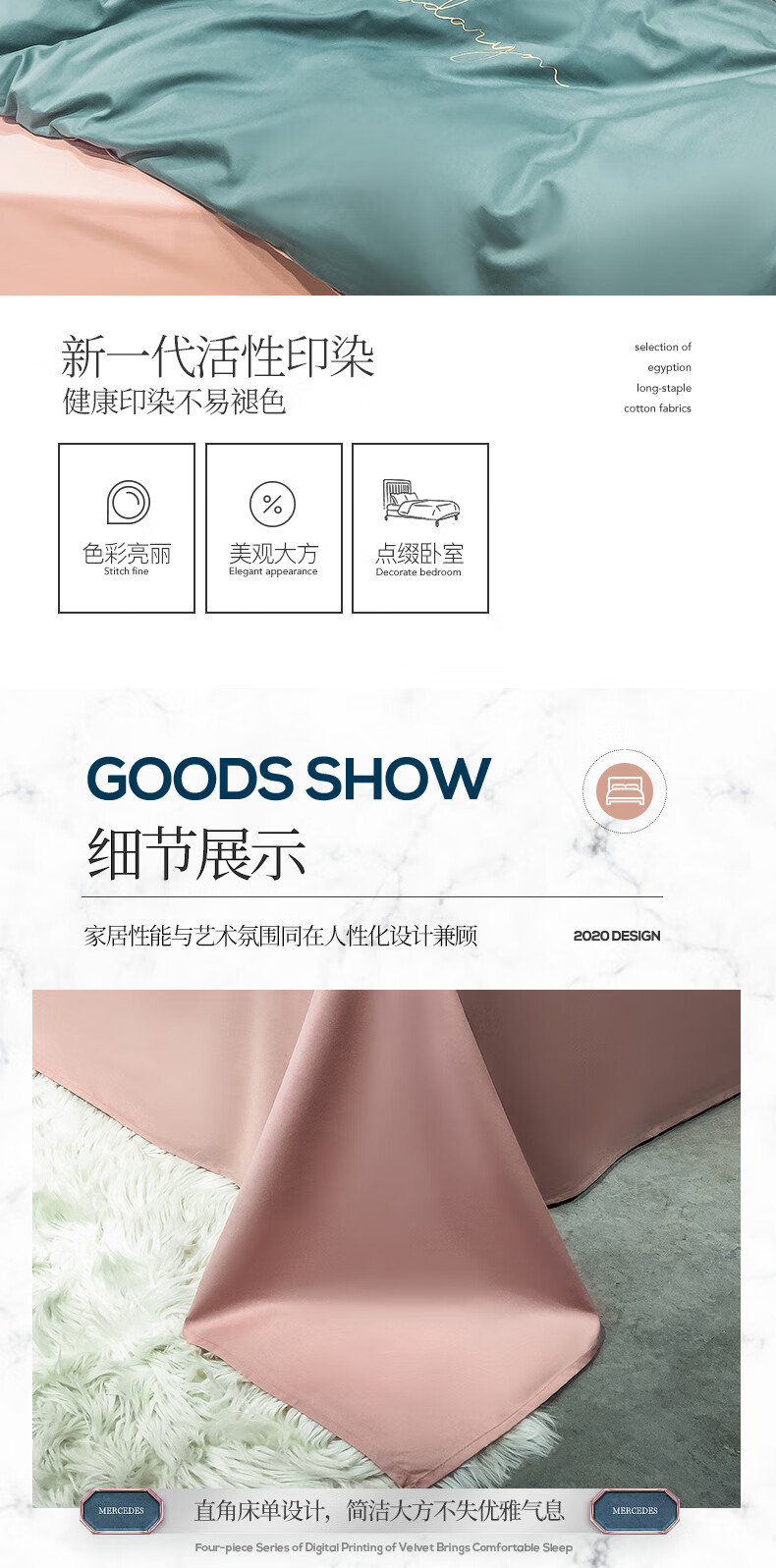 京东自营南极人NanJiren 全棉60支长绒棉四件套 裸睡套件床上用品 纯棉被套床单枕套 220*240cm 1.8/2米床 浅石蓝
