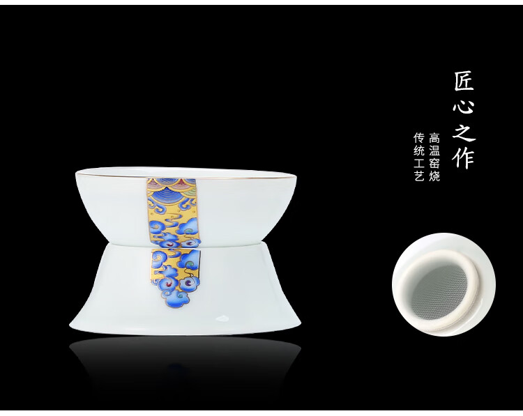 京东自营金镶玉 功夫茶具套组 珐琅工艺白瓷茶具茶壶茶杯整套 家用礼盒包装 珐琅白瓷套组