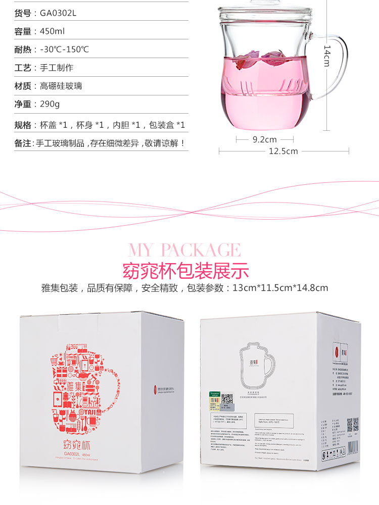 京东自营雅集 玻璃杯 窈窕杯女士家用泡茶杯 耐热过滤水杯子450ML