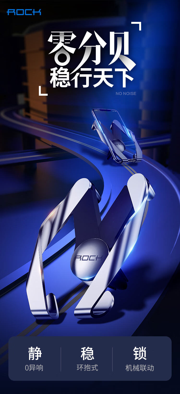 京东自营洛克(ROCK)车载手机支架出风口手机车载支架汽车手机支架汽车导航支架奔驰宝马奥迪大众奔驰树脂深灰