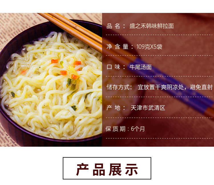 京东自营盛之禾 方便面 韩式拉面 牛尾汤面 109g*5袋 五连包