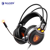 京东自营赛德斯(Sades)R1 头戴式震动发光游戏耳机(黑橙)吃鸡游戏耳机H1Z1 有线电竞电脑耳麦带麦CF专用