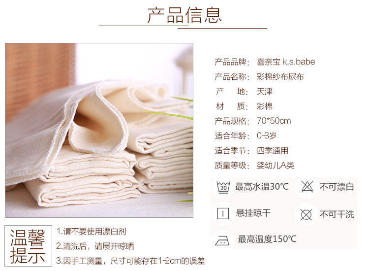 京东自营喜亲宝(K.S.babe) 纱布新生儿婴儿尿布可洗尿片 宝宝全棉纱布尿布戒子多用巾50*70CM6条装白色