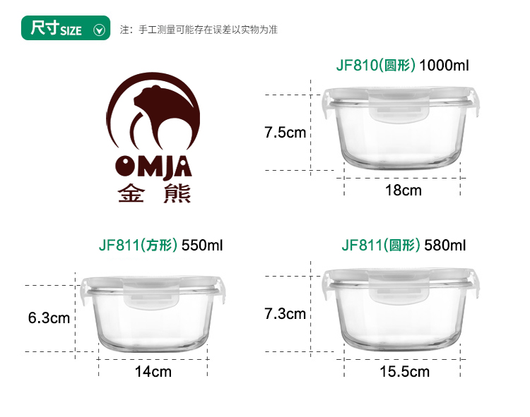 京东自营金熊 耐热玻璃保鲜盒饭盒微波炉碗密封罐便当盒三件套装(1000ml+580ml+550ml) JF812
