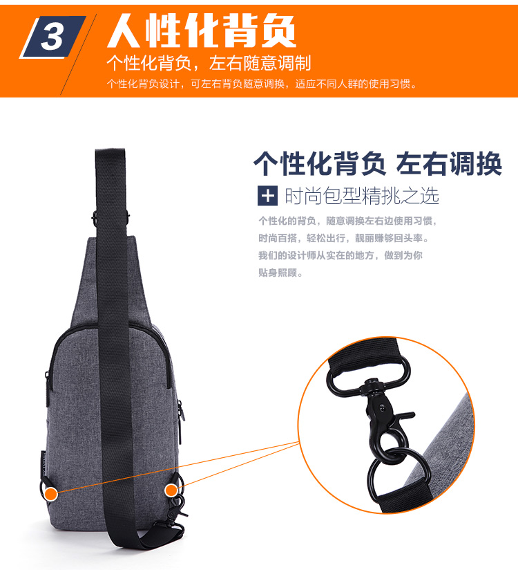 京东自营天逸TINYAT时尚小腰包男新款休闲包斜挎包大容量胸包旅行包户外运动背包Ipad袋T610灰色