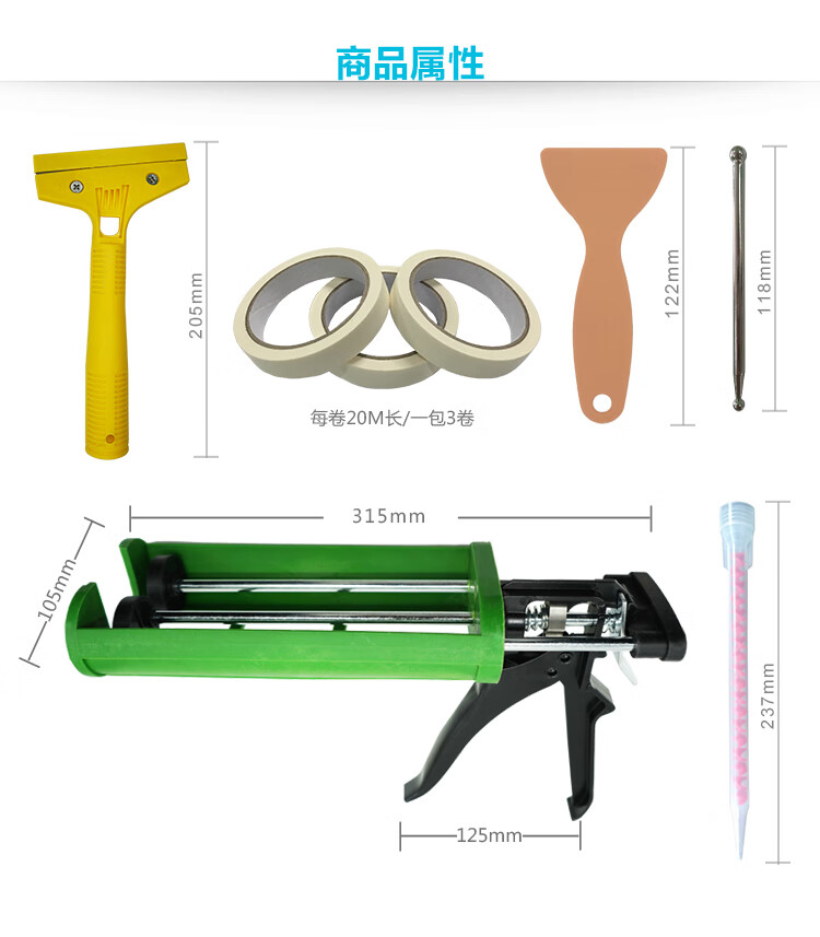 京东自营彩弘 瓷砖美缝工具套装 省力双管美缝胶枪 刮板开槽器 双组份美缝剂施工工具 美纹纸 压缝球