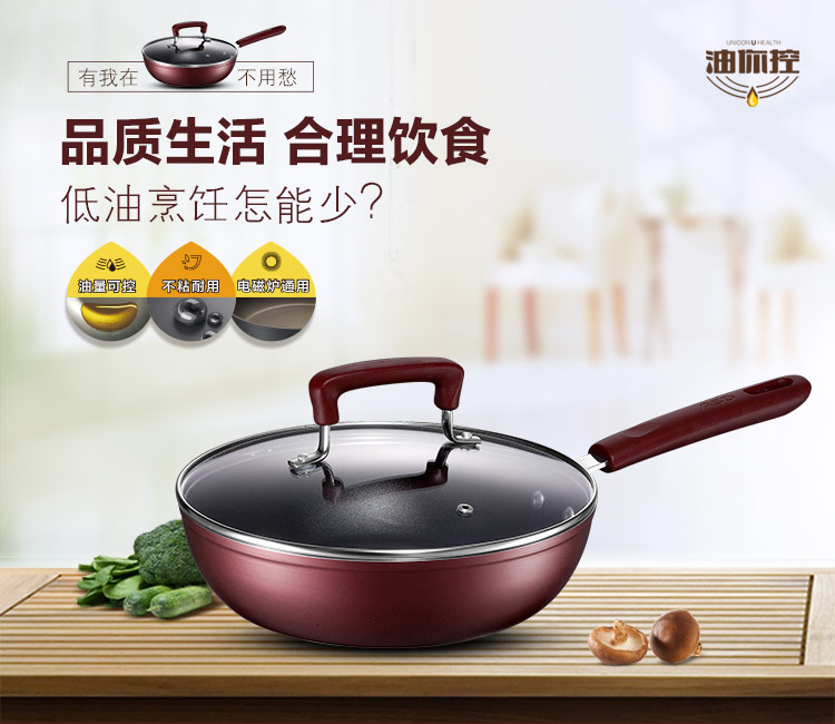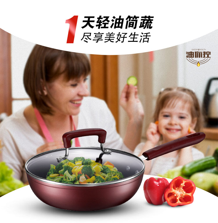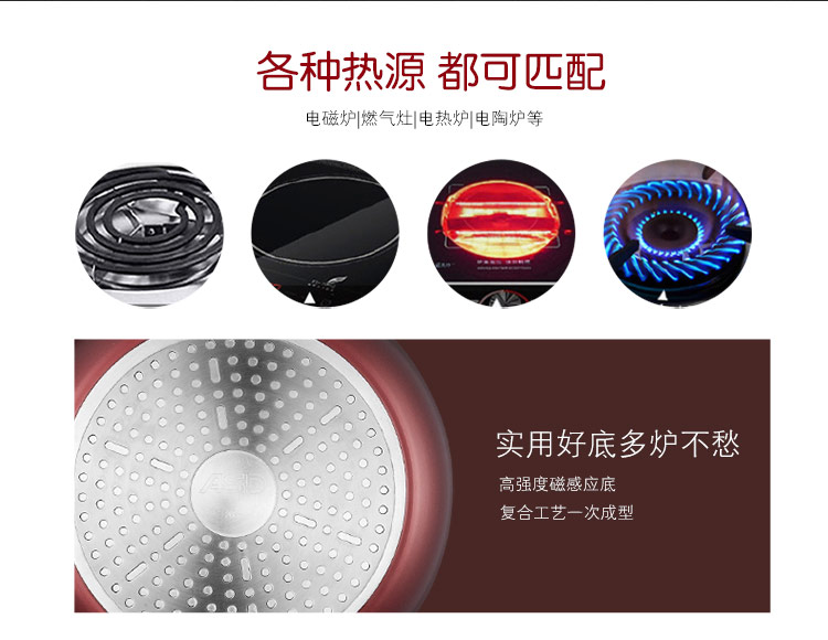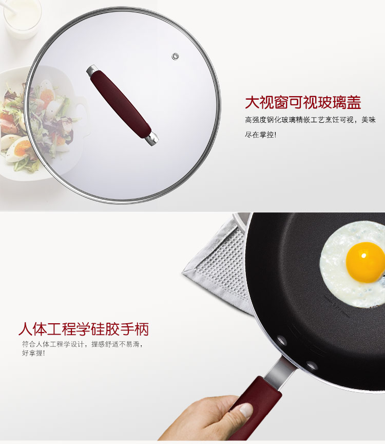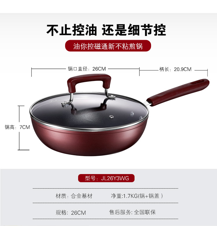 京东自营爱仕达 26CM油你控磁通新不粘煎锅 酒红色 JL26Y3WG-C