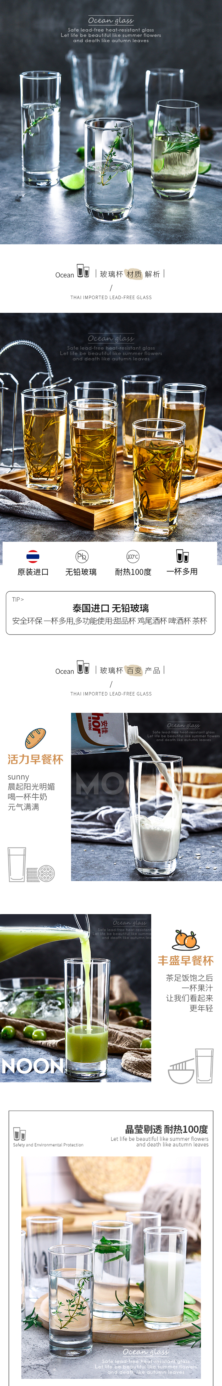 京东自营Ocean泰国进口玻璃水杯牛奶杯果汁杯帕莎四方杯320ml六只套装