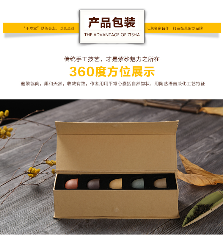 京东自营千寿堂 茶杯紫砂杯 茶具主人杯小杯品茗品茶小口杯 宜兴原矿手工礼盒装 五色土