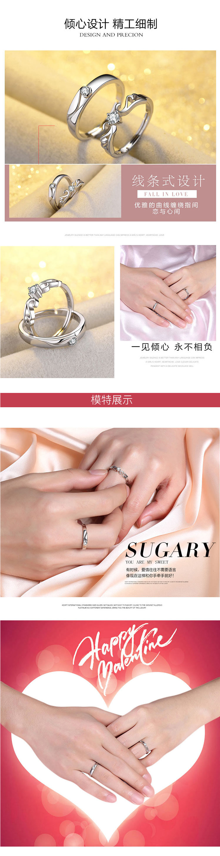 京东自营城市玉光 天使之翼925银情侣戒指开口对戒 一对价送女友情人节生日礼物