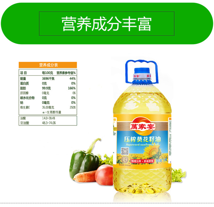 京东自营万家宴 压榨葵花籽油 5L 物理压榨1级食用油 植物油