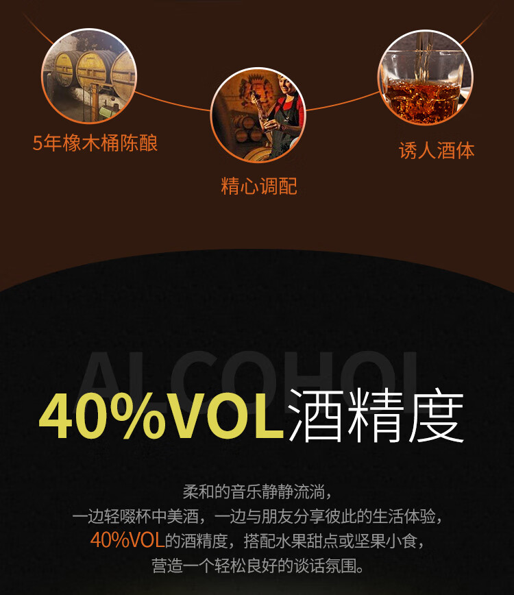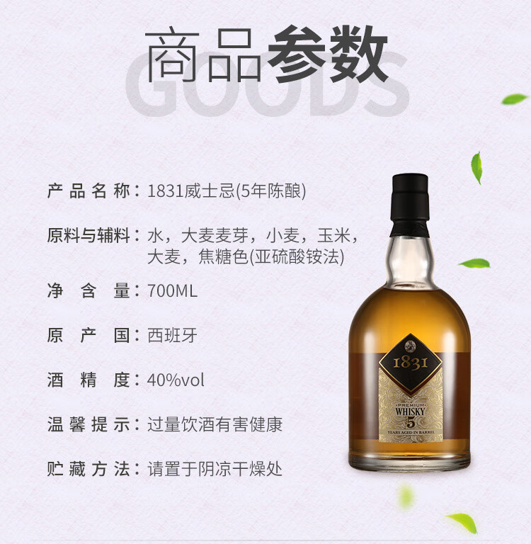 京东自营沃尔玛1831 西班牙进口 洋酒白兰地(5年陈酿)进口酒水 威士忌 700ml