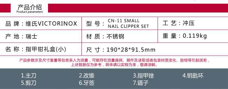 京东自营维氏瑞士军刀 典范指甲钳礼盒 军士刀功能刀指甲刀指甲锉剪刀小刀送女男朋友礼物CN.NAILCLIPPER.S.COMBO