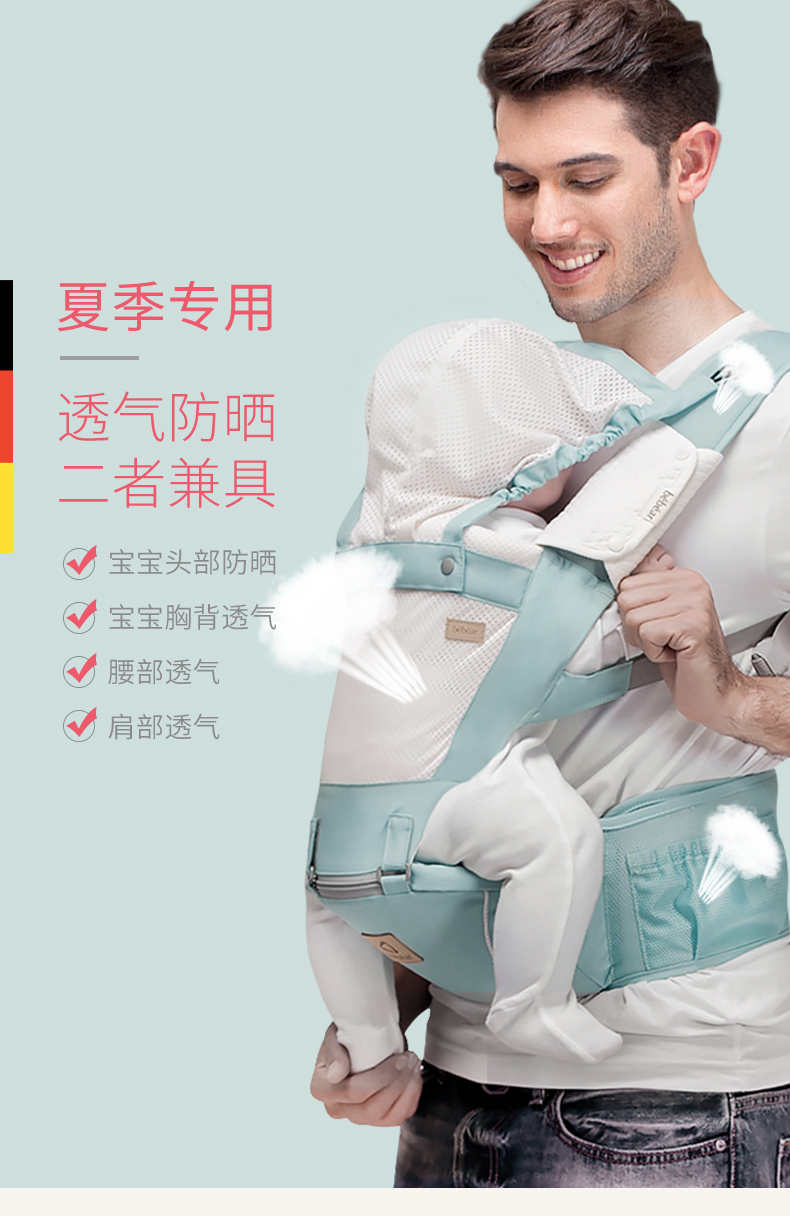 京东自营抱抱熊 婴儿背带EPP腰凳C05松石绿透气款