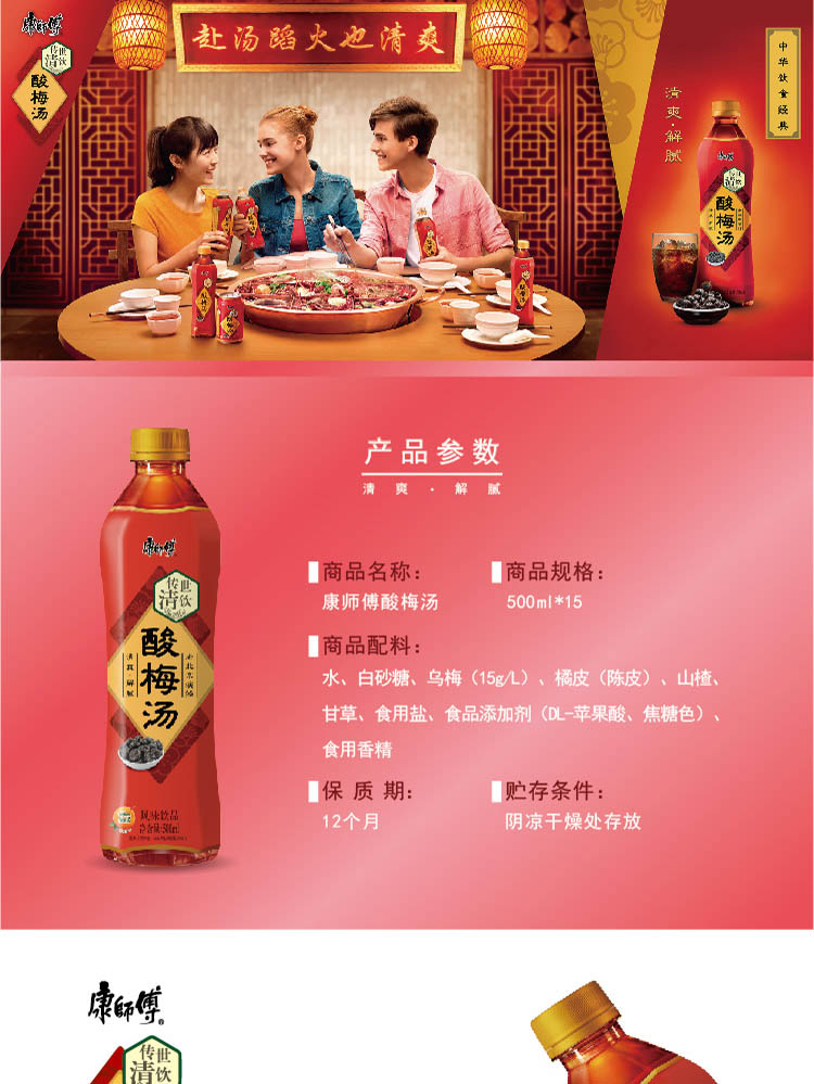 京东自营康师傅 传世清饮 酸梅汤500ml*15瓶 果汁果味饮料 风味饮品 整箱装