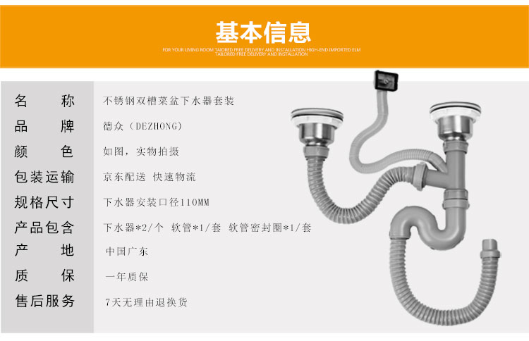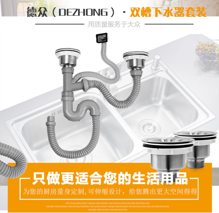 京东自营德众(DEZHONG)7015A 水槽下水器 双槽下水管套装菜盆下水厨房洗菜盆水槽配件