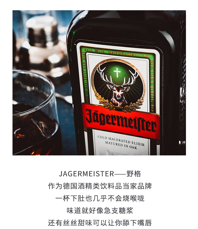 京东自营野格(Jagermeister)洋酒 德国原瓶原装进口 野格利口酒700ml