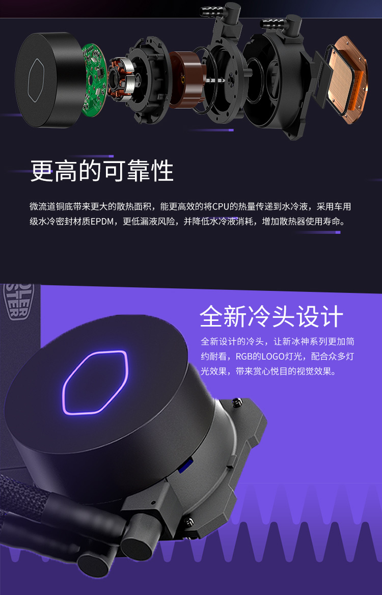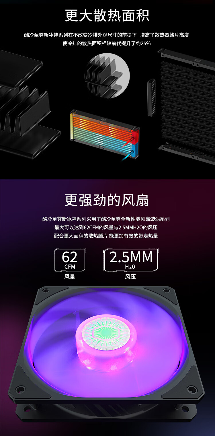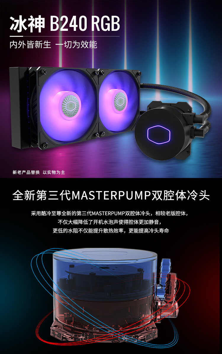京东自营酷冷至尊(CoolerMaster)冰神B240RGB CPU水冷散热器(支持I9 2066、AM4/双腔水泵/微流道设计/均衡型风扇)