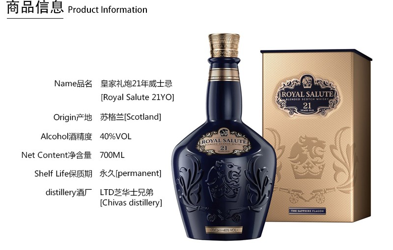 京东自营进口洋酒 RoyalSalute21YO 新装皇家礼炮21年 威士忌酒3色随机发货