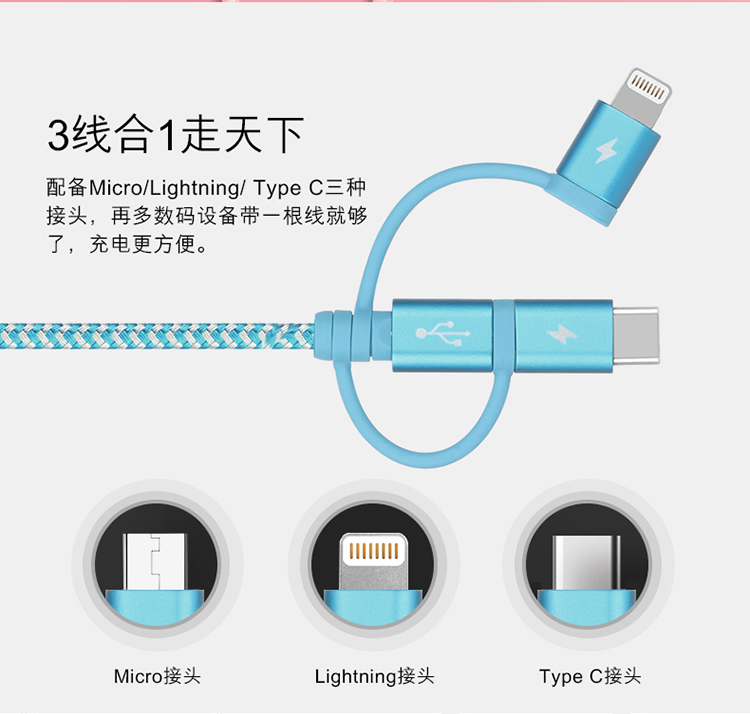 京东自营摩米士MOMAX苹果安卓Type-C数据线三合一MFi认证充电器线适用iPhone12/11Pro/XsMax/XR/8/7/6Plus等1米白色